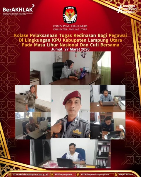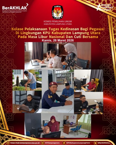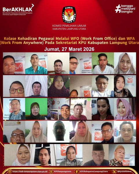 diikuti secara daring di Aula Kantor KPU Kabupaten Lampung Utara pada Kamis, 26 Maret 2026.