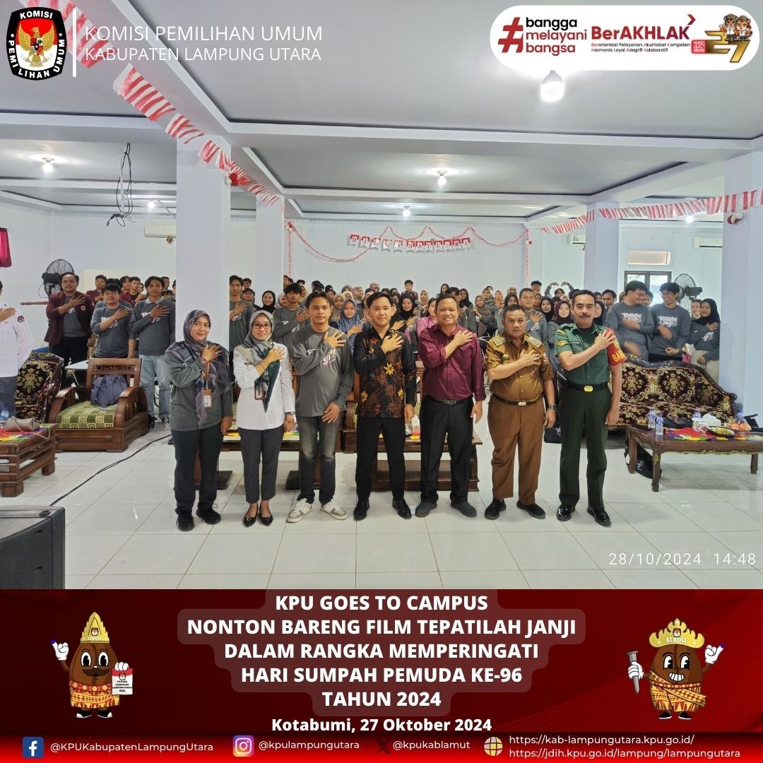KPU Kabupaten Lampung Utara menyelenggarakan Nonton Bareng FIlm Tepatilah Janji Karya Garin Nugroho di Kampus DCC