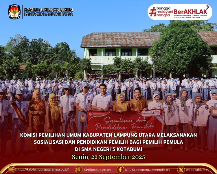 KPU Lampung Utara melaksanakan Sosialisasi & Pendidikan Pemilih bagi Pemilih Pemula di SMA Negeri 3 Kotabumi