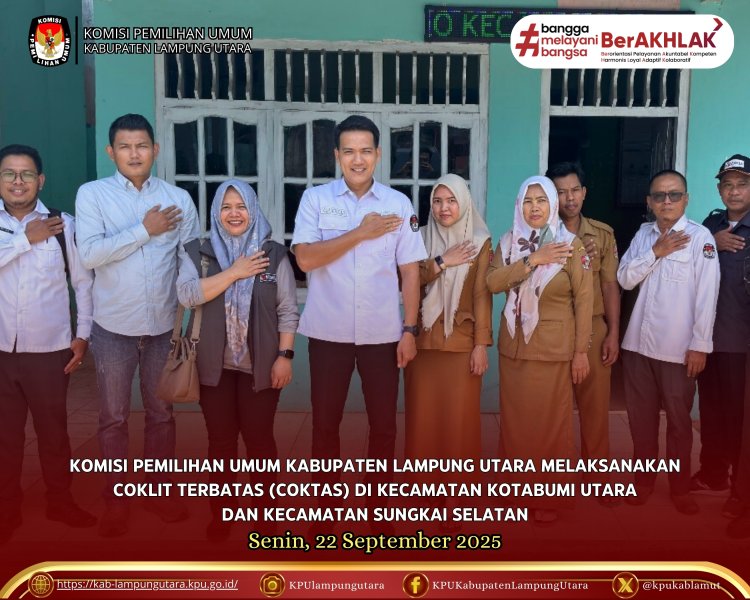 Komisi Pemilihan Umum (KPU) Kabupaten Lampung Utara melaksanakan kegiatan CokTas (Pencocokan dan Penelitian Terbatas) pada Kecamatan Kotabumi Utara dan Kecamatan Sungkai Selatan