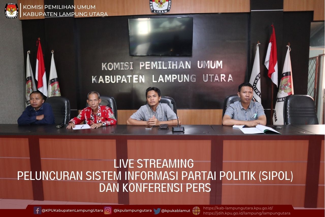 Kotabumi, Komisi Pemilihan Umum (KPU) Kabupaten Lampung Utara menyaksikan Live Streaming Peluncuran Sistem Informasi Partai Politik (SIPOL) melalui kanal Youtube KPU RI, Jum'at (24/06).
