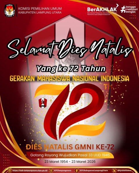 Komisi Pemilihan Umum Kabupaten Lampung Utara mengikuti kegiatan seminar dalam rangka peringatan International Women’s Day yang mengangkat tema “Penguatan Peran Perempuan Dalam Proses Elektoral Sebagai Pilar Demokrasi Substantif”. Kegiatan ini diselenggarakan oleh KPU Republik Indonesia dan diikuti secara daring di Aula Kantor KPU Lampung Utara pada Kamis, 12 Maret 2026.