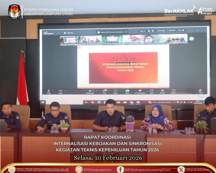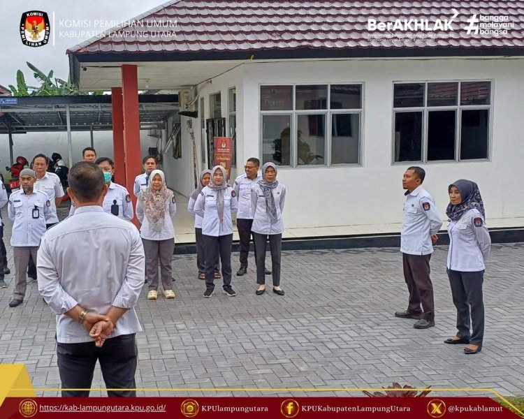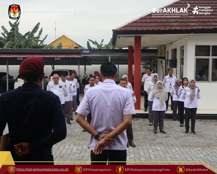 KPU Kabupaten Lampung Utara melaksanakan Apel rutin, bertempat di Halaman Kantor KPU Kabupaten Lampung Utara, Senin (9 Februari 2026).