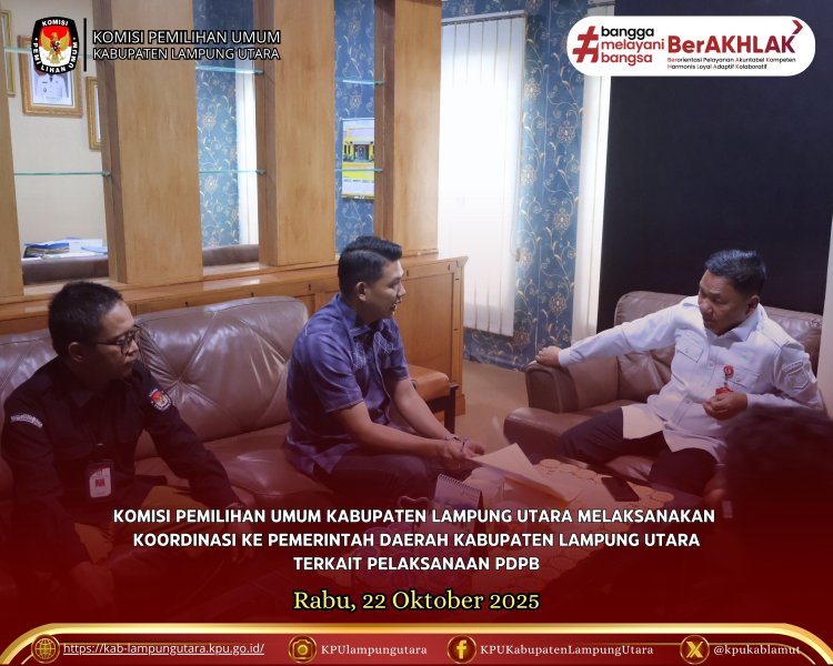 (Selasa, 21 Oktober 2025) KPU Kabupaten Lampung Utara, mengikuti Rapat Koordinasi Pengawasan Dalam Rangka Peningkatan Dan Penguatan Kinerja Pengawasan Di Lingkungan Komisi Pemilihan Umum KPU Provinsi/KIP Aceh dan KPU/KIP Aceh Kabupaten/Kota via daring. Kegiatan diselenggarakan oleh KPU RI menghadirkan narasumber dari BPKP yang menyampaikan materi terkait Overview Penyelenggaraan SPIP, Narasumber Ketua Divisi Hukum dan Pengawasan KPU RI yang menyampaikan materi terkait Keputusan KPU Nomor 855 Tahun 2025 Tentang Pedoman Teknis Penyelenggaraan Sistem Pengendalian Intern Pemerintah Di KPU, KPU Provinsi Dan KPU Kabupaten/Kota, Narasumber dari Kepolisian yang menyampaikan materi terkait Sinergisitas KPU dan APH dalam Penanganan dan Penyelesaian Kasus Tipikor, Narasumber dari Kejaksaan yang menyampaikan materi terkait Peran APIP dan Biro Hukum atas Permasalahan Tipikor pada KPU Provinsi dan KPU Kabupaten/Kota, Narasumber dari KPK yang menyampaikan materi terkait Sosialisasi Whistle Blowing System (WBS) dan Narasumber dari BPK yang menyampaikan materi terkait Komitmen penyelesaian tindak lanjut hasil pemeriksaan. Hadir Mengikuti rapat yaitu jajaran Komisioner, Sekretaris, Kasubbag serta staf KPU Lampung Utara. #kpumelayani #kpukabupatenlampungutara