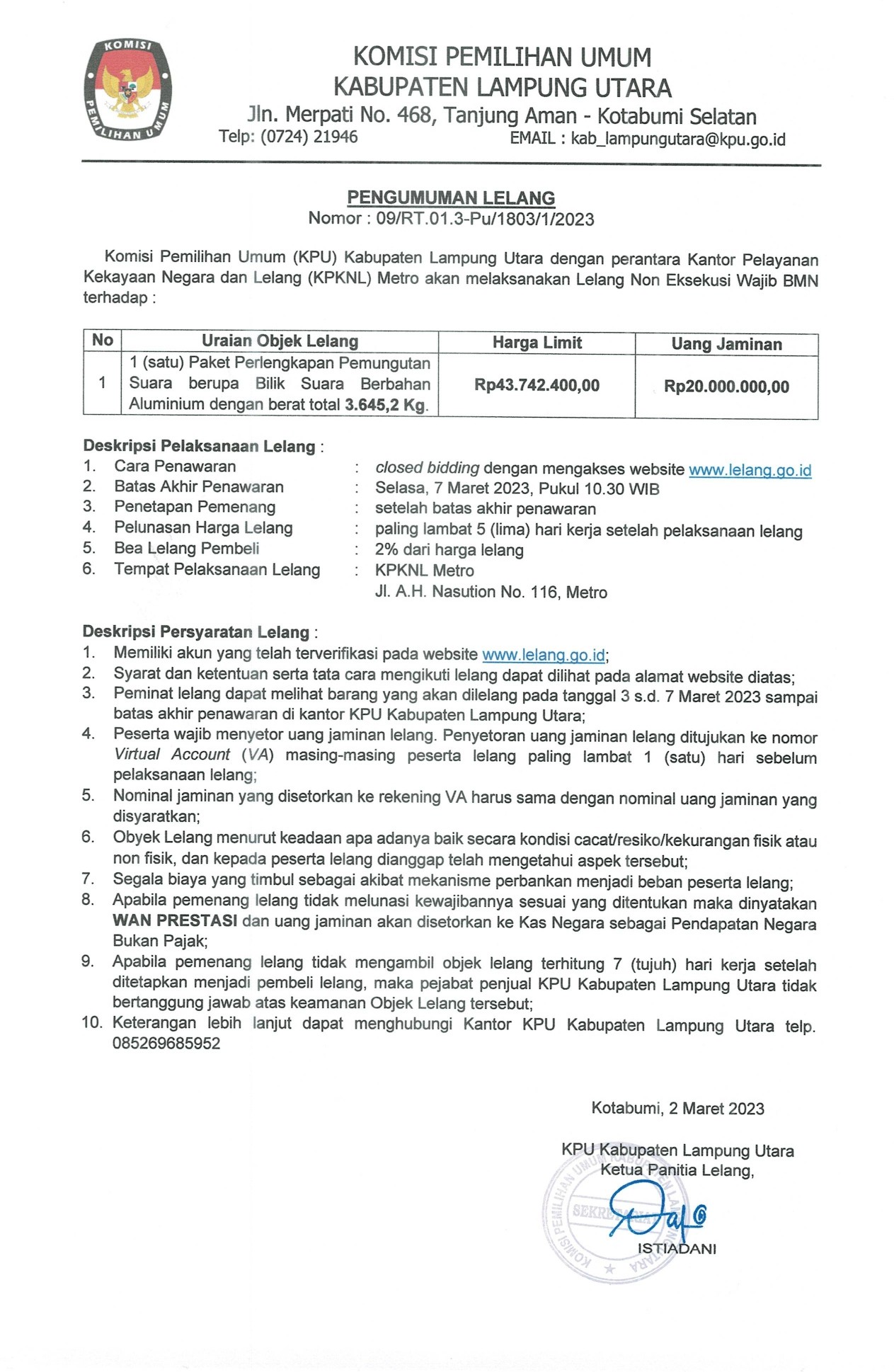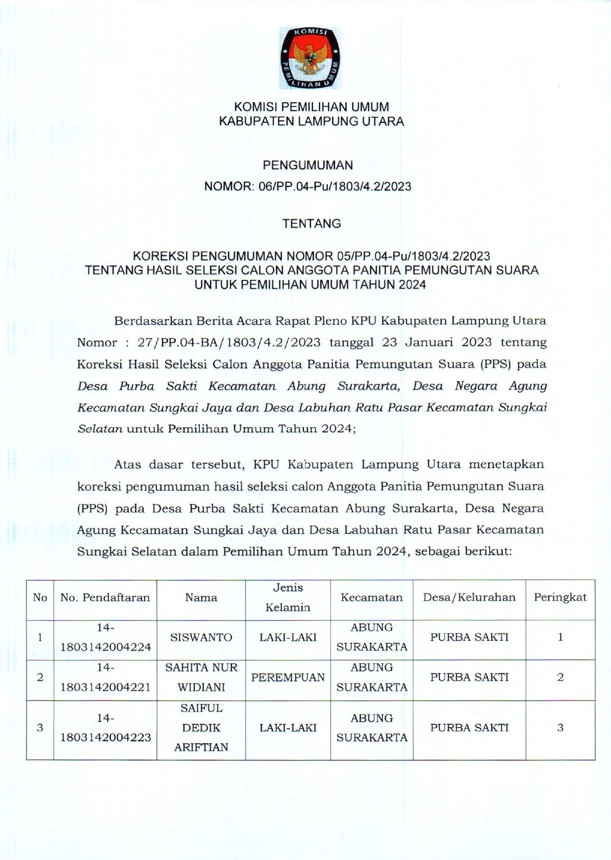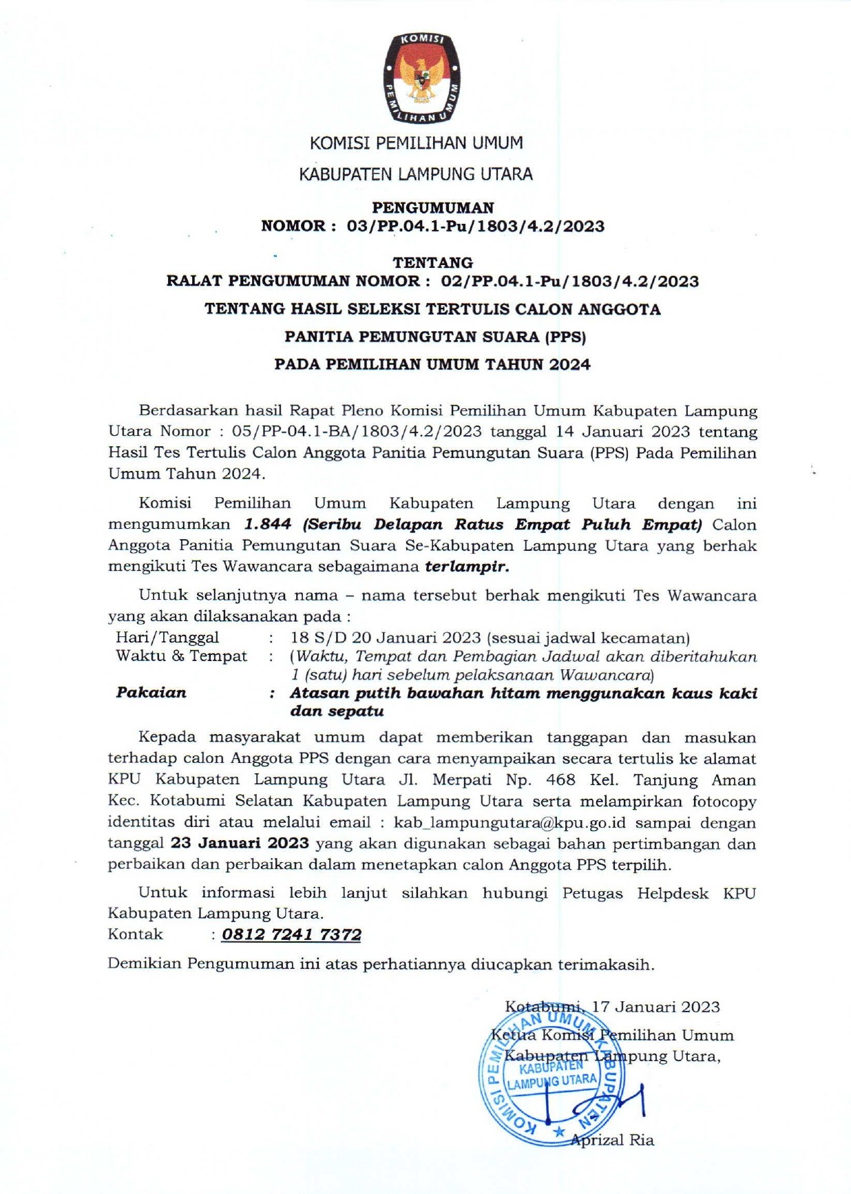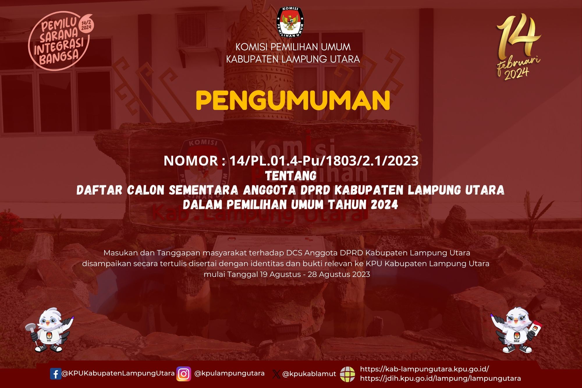 PENGUMUMAN PENGAJUAN CALON ANGGOTA DPRD KABUPATEN LAMPUNG UTARA
